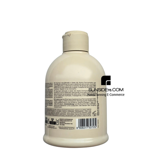 Das Shampoo enthält fermentierte Haferflocken, die reinigende und regenerierende Eigenschaften für die Mikrobiota der Kopfhaut bieten.