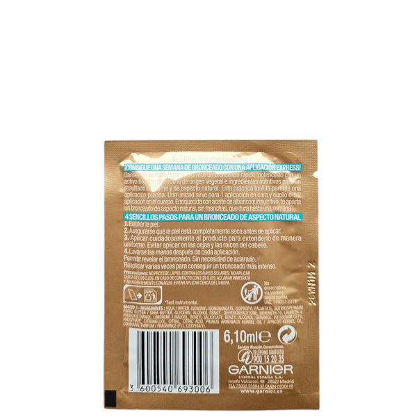 Garnier Natural Tan sorgt für eine schnelle Bräune mit 100 % pflanzlichem Bräunungswirkstoff und pflegenden Inhaltsstoffen für ein gleichmäßiges, natürlich aussehendes Ergebnis.