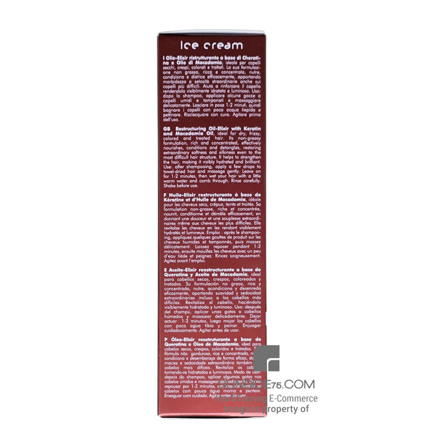 Restrukturierendes Ölelixier mit Keratin und Macadamiaöl, ideal für trockenes, lockiges, coloriertes und chemisch behandeltes Haar.
